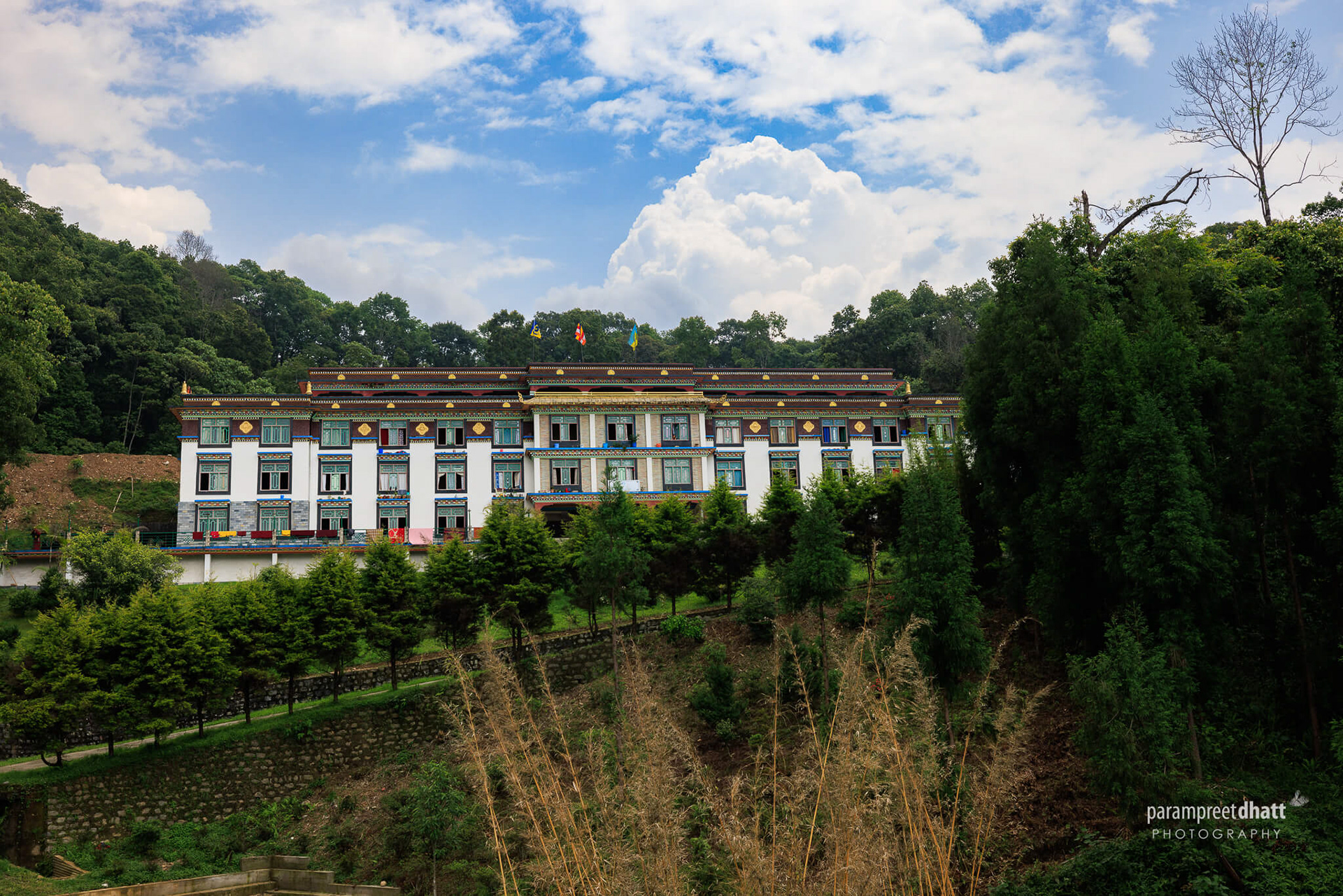 Lingdum Monastery, also known as Ranka Monastery and Pal Zurmang Kagyud Monastery, is located in Ranka, about 20 kilometres from Gangtok, the capital of Sikkim. It is built in a large and attractive location surrounded by greenery and is regarded as one of East Sikkim's most beautiful monasteries. The monastery was inaugurated in 1999 and does not have much historical and mythical significance to emphasise or discuss, unlike those built in the 17th and 18th centuries. It was built in the Tibetan architectural style and is an important site of prayer. The monastery also serves as a training facility for new and novice monks. Lingdum Monastery adheres to the Zurmang Kagyud tradition of Buddhism, which is led by the lineage's 12th heir, Zurmang Gharwang Rinpoche.